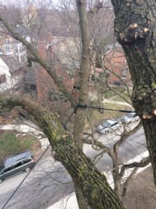 Pruning during the dormant months is an extremely important component of Elm tree care as not to attract the bark beetle which carries dutch elm disease. After pruning out dead and damaged limbs, our team installed an intricate dynamic cable support system to ensure the long term preservation of the canopy. What a beauty!