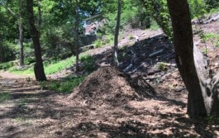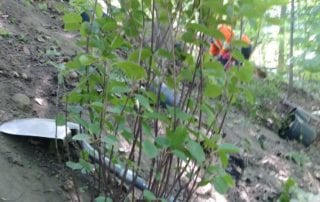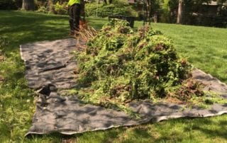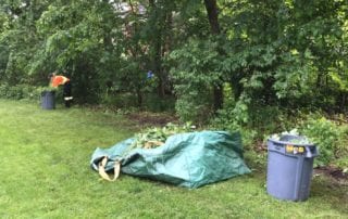 When an arborist crew comes in to begin the ravine stewardship, the first task is usually to remove any and all invasive trees, shrubs, vines, and ground-cover. Some common invasive species that we find in the ravines include: Manitoba Maple, Norway Maple, Japanese knotweed, Garlic Mustard, and Dog Strangling Vine. The arborists will try to remove as much of the root system from the vines and ground cover as possible to prevent re-growth, and mulch is often used as another weed-suppression tactic.