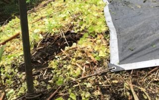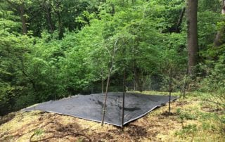 Photos above show some of the invasive species removed from ravines, as well as some weed-suppression tactics (mulching and tarping)