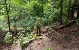 The first stage is always writing an arborist report that includes a full inventory of every tree located in the ravine. A plan is then made as to which trees will be removed (if they are dead, hazardous, or invasive) and which will be preserved.