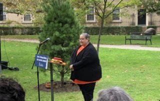 The planting was celebrated with a ceremony that included remarks from the University’s President Meric Gertler and Associate Professor (and academic adviser on Indigenous curriculum and education to the vice-president and provost) Susan Hill.